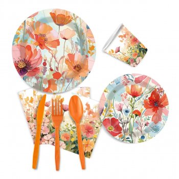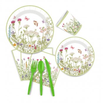 240pcs Wildflower Disposable Paper Tableware Set – Spring Floral Party Décor