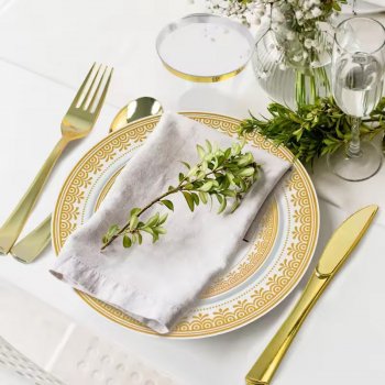 700-Piece Gold-Rim Disposable Dinnerware Set